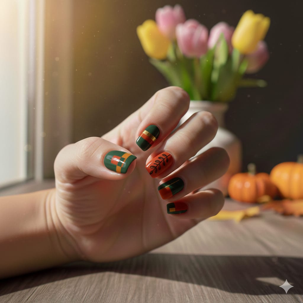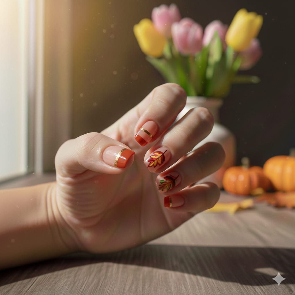 Negative space nails with autumn themes are modern and stylish. You can leave parts of the nail bare while adding fall colors, glitter, or leaf patterns. These designs balance creativity with minimalism. Negative space autumn nails are ideal for Pinterest because they are visually striking and trendy. They suit casual, office, or festive looks.