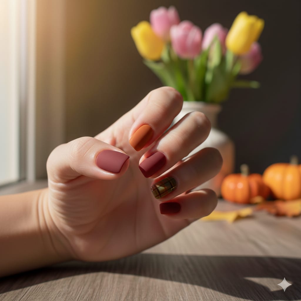 Matte nails are perfect for creating cozy and elegant autumn looks. Matte finishes in earthy tones, burgundy, or olive green add sophistication. Matte autumn nails are popular in 2026 because they give a modern, minimalist vibe. They pair beautifully with fall fashion like sweaters and scarves. Pinterest users love matte nail inspiration.