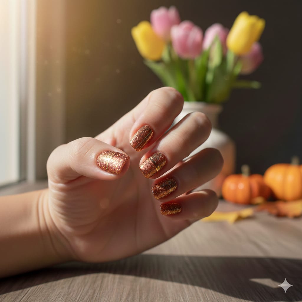 Adding glitter or metallic touches gives autumn nails a festive and glamorous feel. Gold, copper, or bronze glitter complements deep fall tones beautifully. These accents can be added to tips, nail art, or entire nails. Glittery autumn nails are perfect for holiday parties or photoshoots. They make your nails pop in social media feeds.