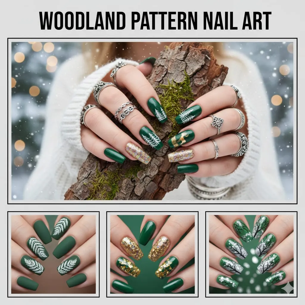 Woodland nails use leaves, branches, and nature patterns. They feel creative and calming. These nails are great for nature lovers.