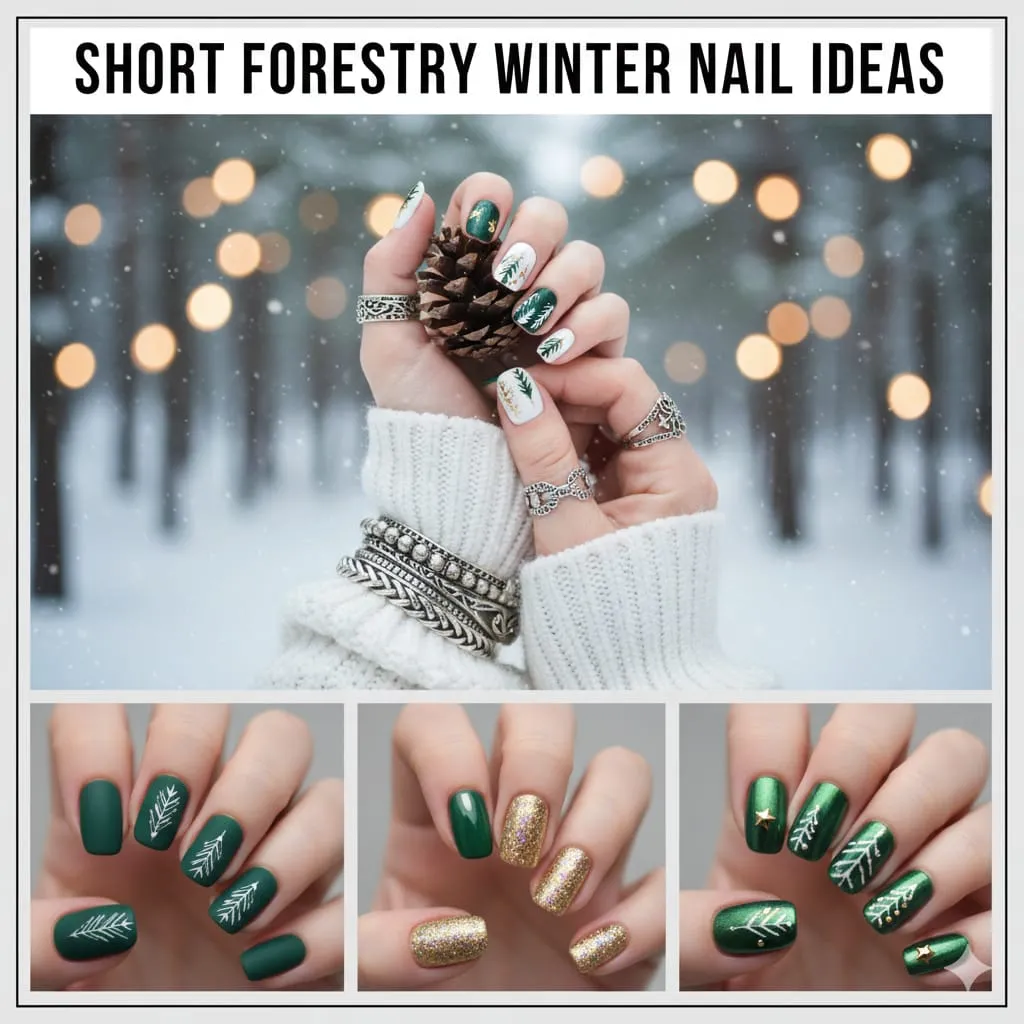 Short Forestry Winter Nail Ideas