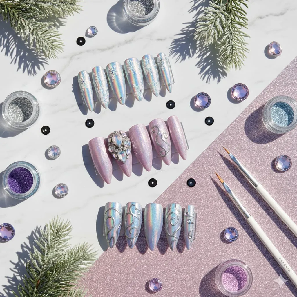 Holographic nails with 3D designs are bold and creative. You can add raised flowers, bows, or gems on top of holo bases. The texture plus shine makes the nails stand out. These designs are great for Pinterest pins and close-up shots. They’re perfect for fashion lovers and trendsetters.