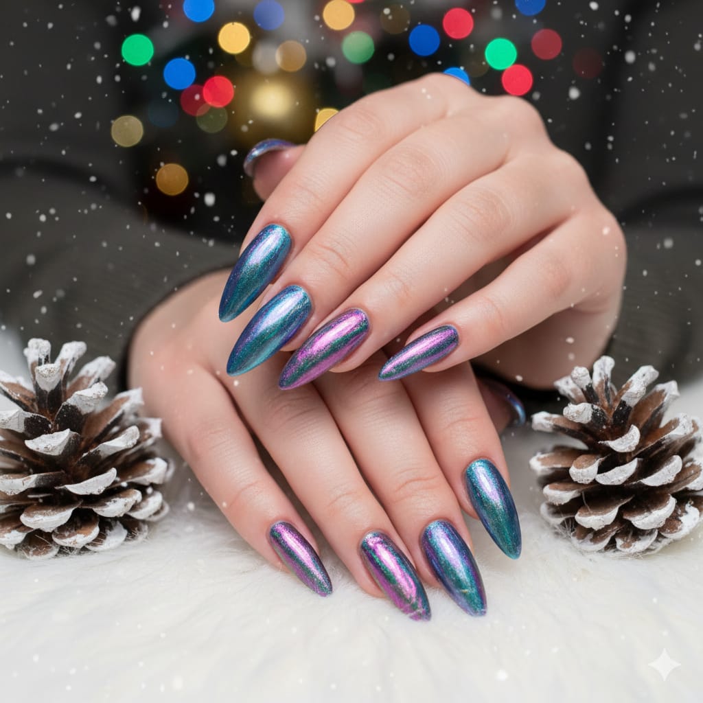 Aura Nails with Chrome Effect