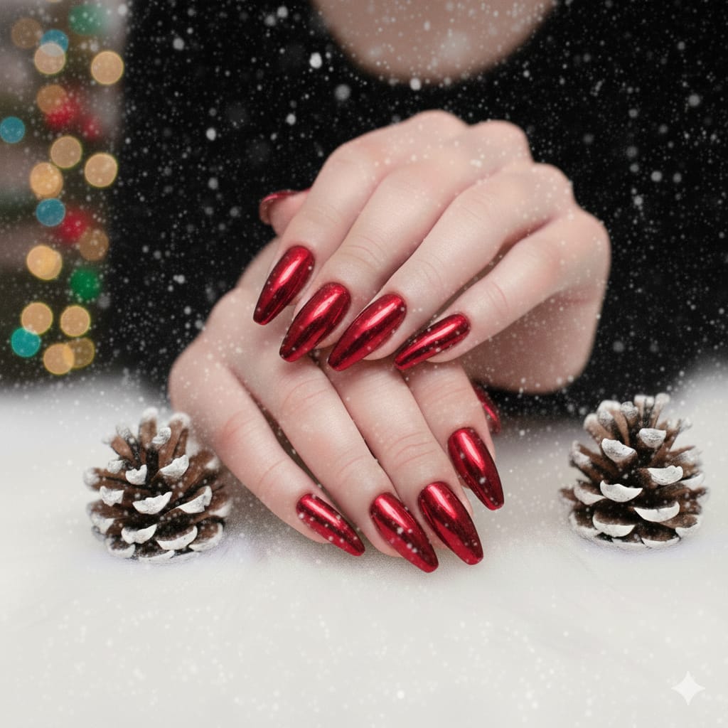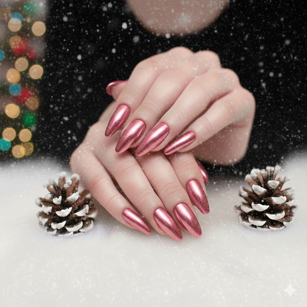 Chrome aura nails combine glowing aura colors with a shiny mirror or pearl chrome finish. The result looks futuristic, glossy, and highly aesthetic. These nails are perfect for fashion lovers and bold Pinterest looks.