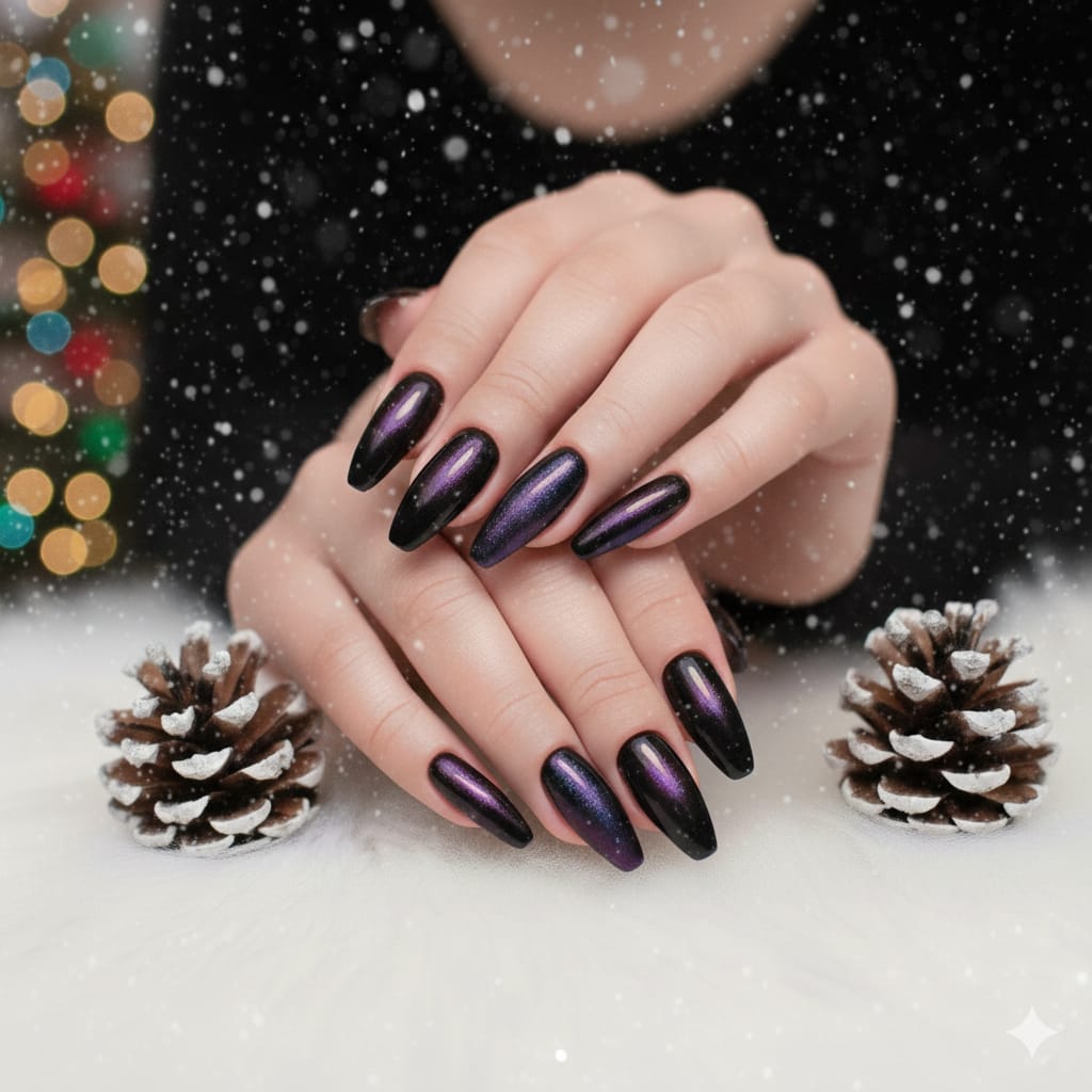 Dark aura nails use deep colors like black, burgundy, forest green, or plum with glowing centers. They look mysterious, bold, and perfect for fall and winter seasons. This category is great for long nails and gothic aesthetics.
