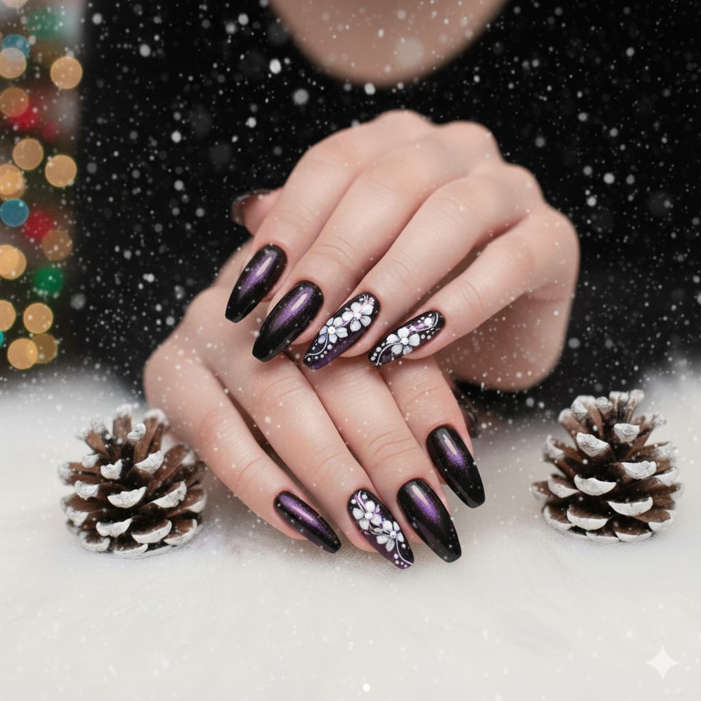 Aura Nails with Floral Art