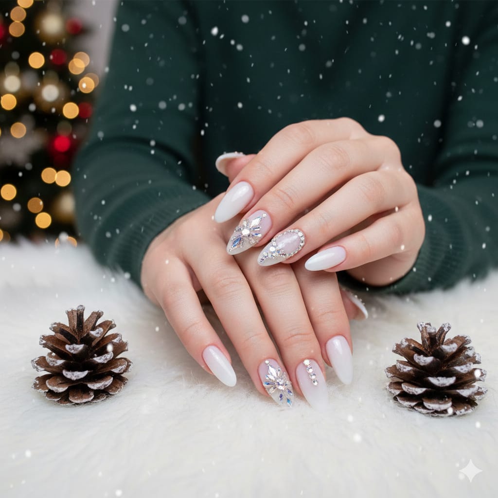 Classic milky white nails are soft, translucent white nails with a glossy finish. They look clean, natural, and very elegant. This style is perfect for everyday wear, weddings, and minimal fashion lovers.