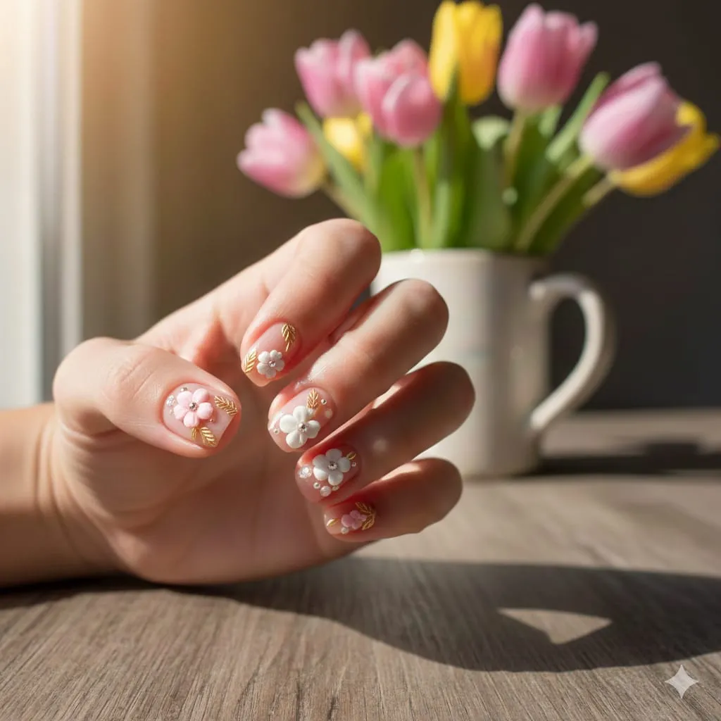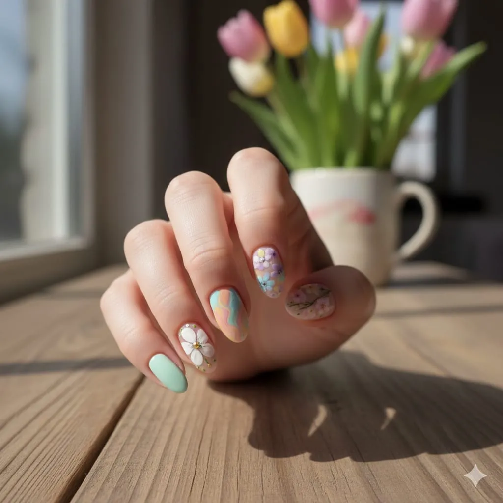 Floral designs are a must for spring. Flowers, petals, and leaves painted on nails bring a romantic and fresh vibe. You can go for tiny daisies, roses, or abstract floral patterns. Floral nails are perfect for spring weddings, festivals, or garden outings. Pinterest boards love sharing floral nail inspiration because it captures the essence of the season.