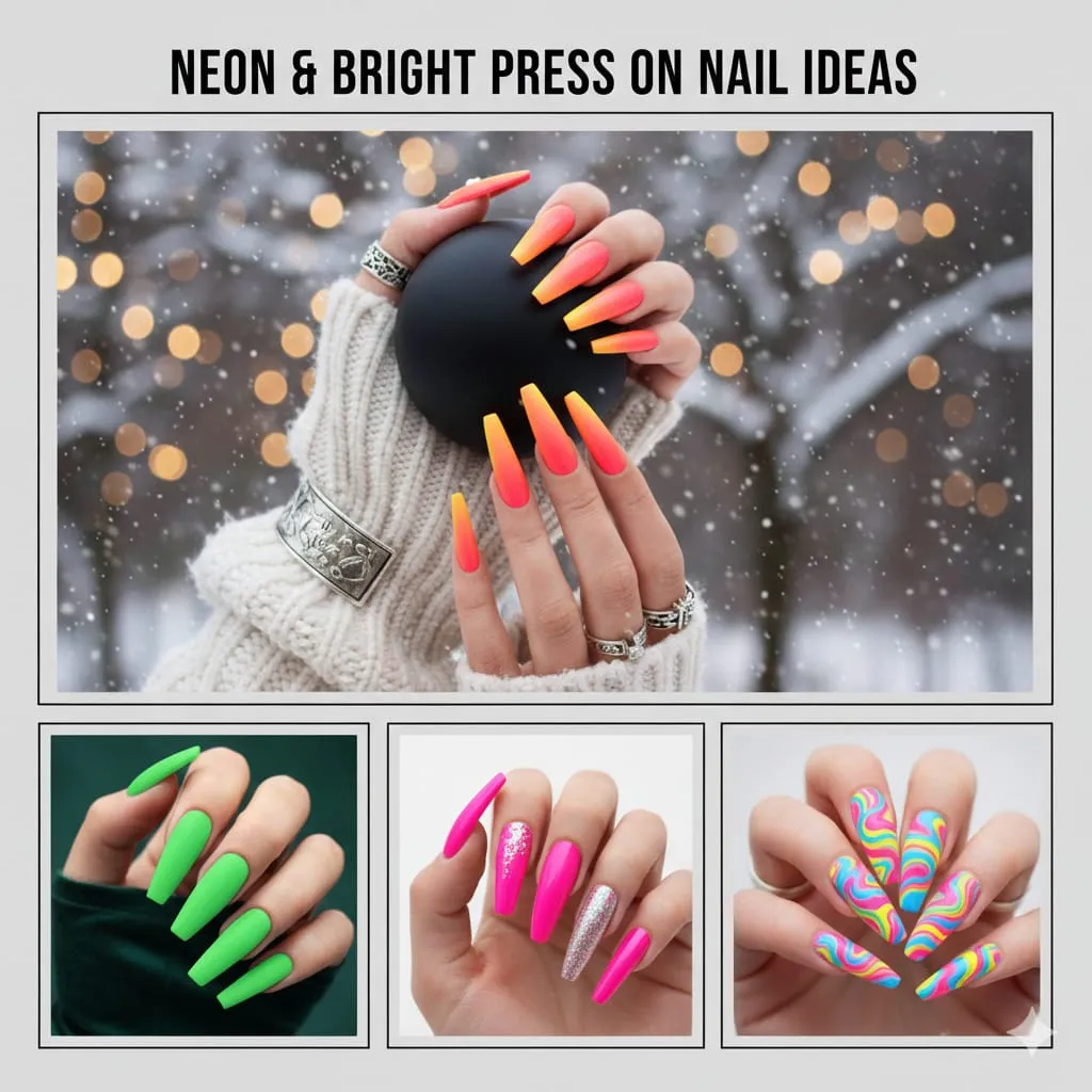 Neon press-on nails add energy and fun to your spring manicure. Bright pinks, yellows, and blues feel playful and trendy. Great for making your nails pop this season.