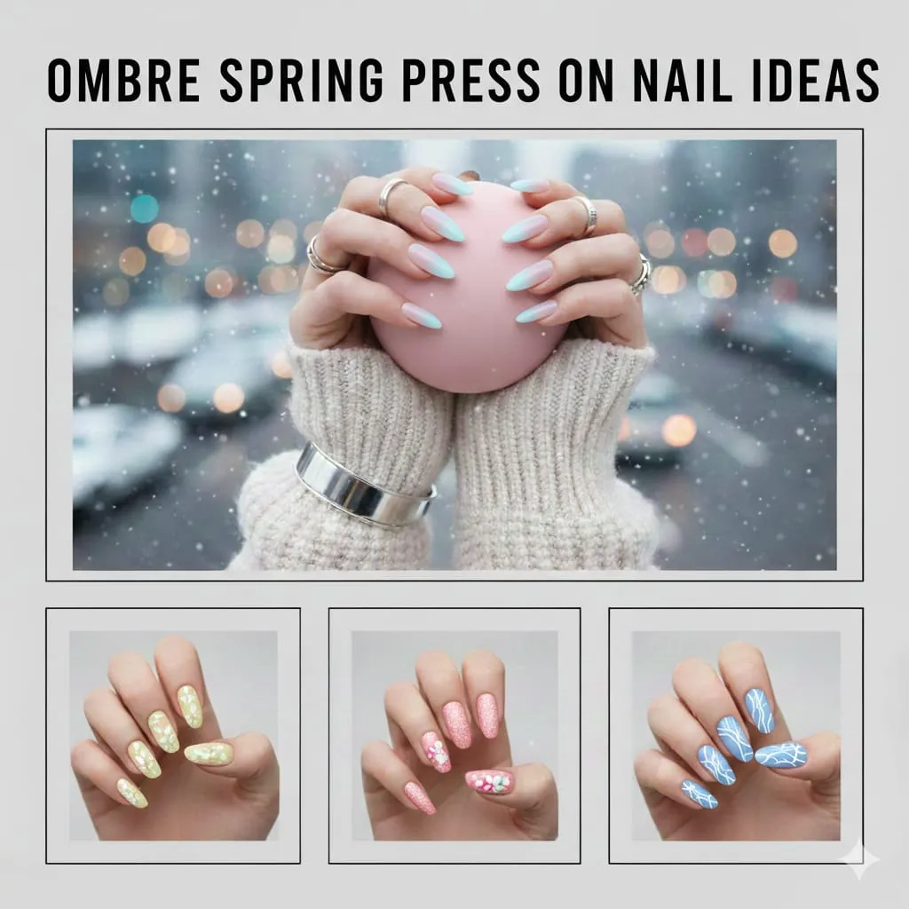 Ombre press-ons blend two or more pastel shades beautifully. The gradient effect gives nails a soft, dreamy look. These nails are great for Pinterest-worthy spring inspiration.